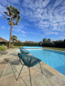 Nichée dans un parc de 2000m², notre piscine est un havre de calme et de sérénité. Profitez de transats confortables, d’une table de pique-nique, et de jeux d’eau. Chambres d’Hôtes « LA CASA des AUGAS »